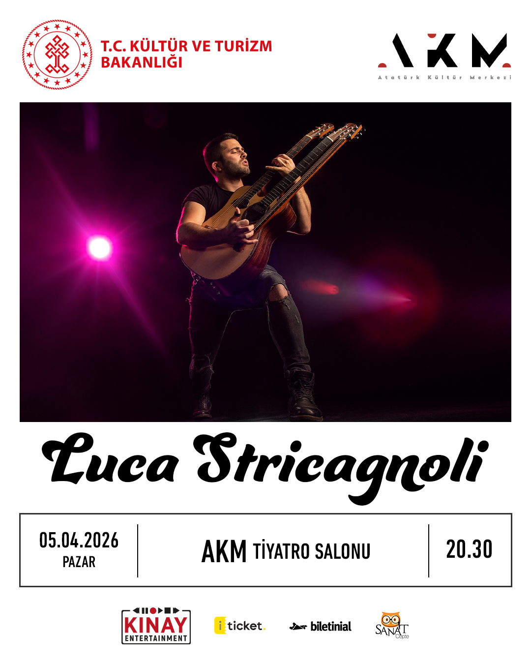 Luca Stricagnoli, 5 Nisan'da İstanbul Atatürk Kültür Merkezi Tiyatro Salonu'nda siz sevenleriyle buluşuyor.